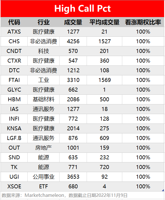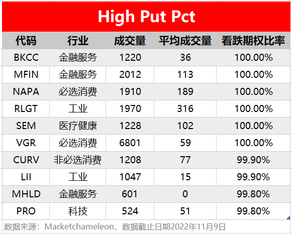 注:High Call Pct/High Put Pct是指相关期权标的当前看涨/看跌比例大小,该比值越高意味着该期权标的看涨/看跌的合约占比越高。
