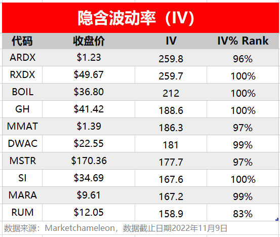 (注:隐含波动率(IV)指标是期权交易最常用的指标之一,通常情况下该指标越高,意味着期权交易的机会越大,IV(%)百分比表示当前隐含波动率在过去一年中最高和最低区间内的相对位置,有助于了解指定期权波动率的纵向趋势,该比率越高说明近期隐含波动率处于上升趋势。)
