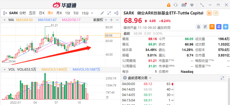 有意思的是,去年11月9日成立的狙击木头姐的做空ARK创新基金ETF-Tuttle Capital在一年的时间里已经大涨133.67%。根据业内的一份统计,这一优异回报在过去一年推出的近450只ETF中,排名高居第二位。哪怕在所有当前处于交易状态的基金中,目前规模达到3.93亿美元的做空ARK创新基金ETF-Tuttle Capital在上市首年的表现,也可以跻身前20位。