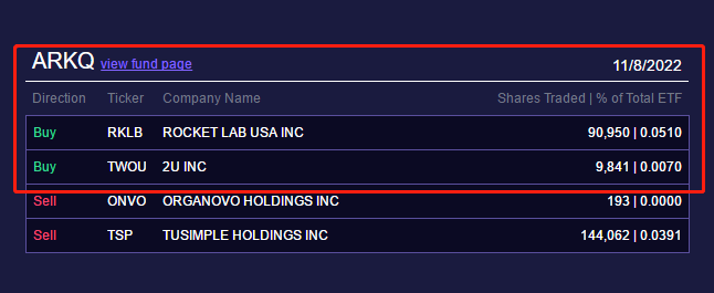 周二,方舟基金的联合创始人、首席执行官“木头姐”抄底了三只“脚踝斩”股。据统计,当日其管理的多只基金累计加仓2U 129265股,Rocket Lab USA, Inc. - Common Stock 100226股,Coinbase Global 420949股。