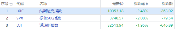 周三(11月9日),加密货币圈危机引发华尔街跨资产抛售,美国10月CPI数据公布前夜避险情绪弥漫,美股全线收跌。截至收盘,道指 $DJI 跌1.95%,标普500指数 $SPX 跌2.08%,纳指 $IXIC 跌2.48%。
