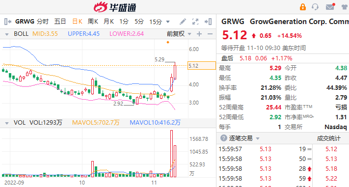 随着美国中期选举继续,美国大麻合法化进程获得推进。隔夜市场上不少大麻股异动,如水培商GrowGeneration $GRWG 周三大涨14.54%。