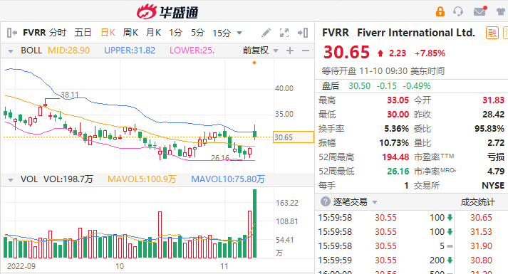 Piper Sandler分析师Matt Farrell认为,Fiverr International超预期的业绩是“非常有意义的”,在宏观环境中存在诸多挑战的当下,Fiverr似乎已经准备好了出击。该分析师对该股保持“增持”评级,目标价为50美元(较其最新收盘价有约63%的潜在上涨空间)。