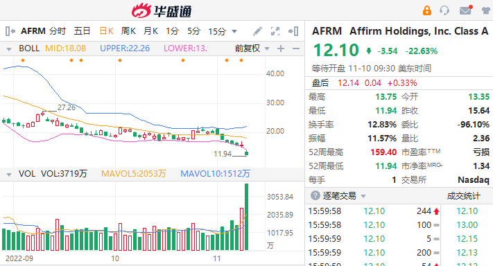 三、重挫个股:“元宇宙第一股”Roblox、“美版花呗”Affirm均跌超20%