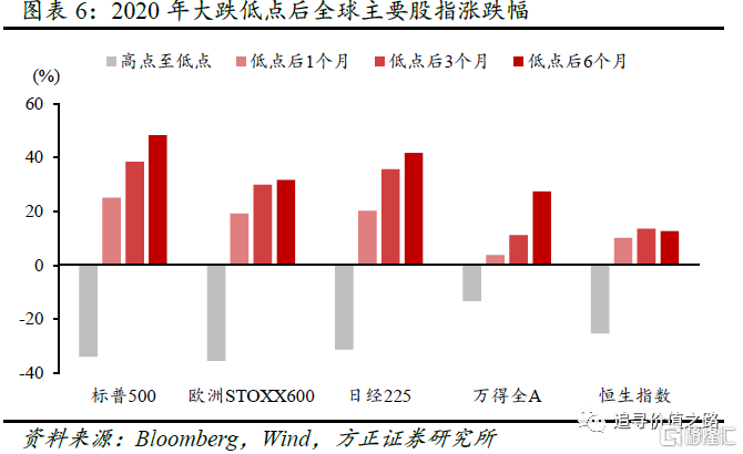 1、历次大跌低点后全球主要股指涨跌幅对比