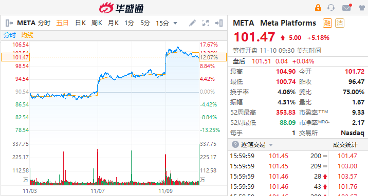 3、Meta $META 巨幅裁员“震撼硅谷”,股价周内反弹近12%;机构表示看好“公司战略重大转变”,股价或已触底