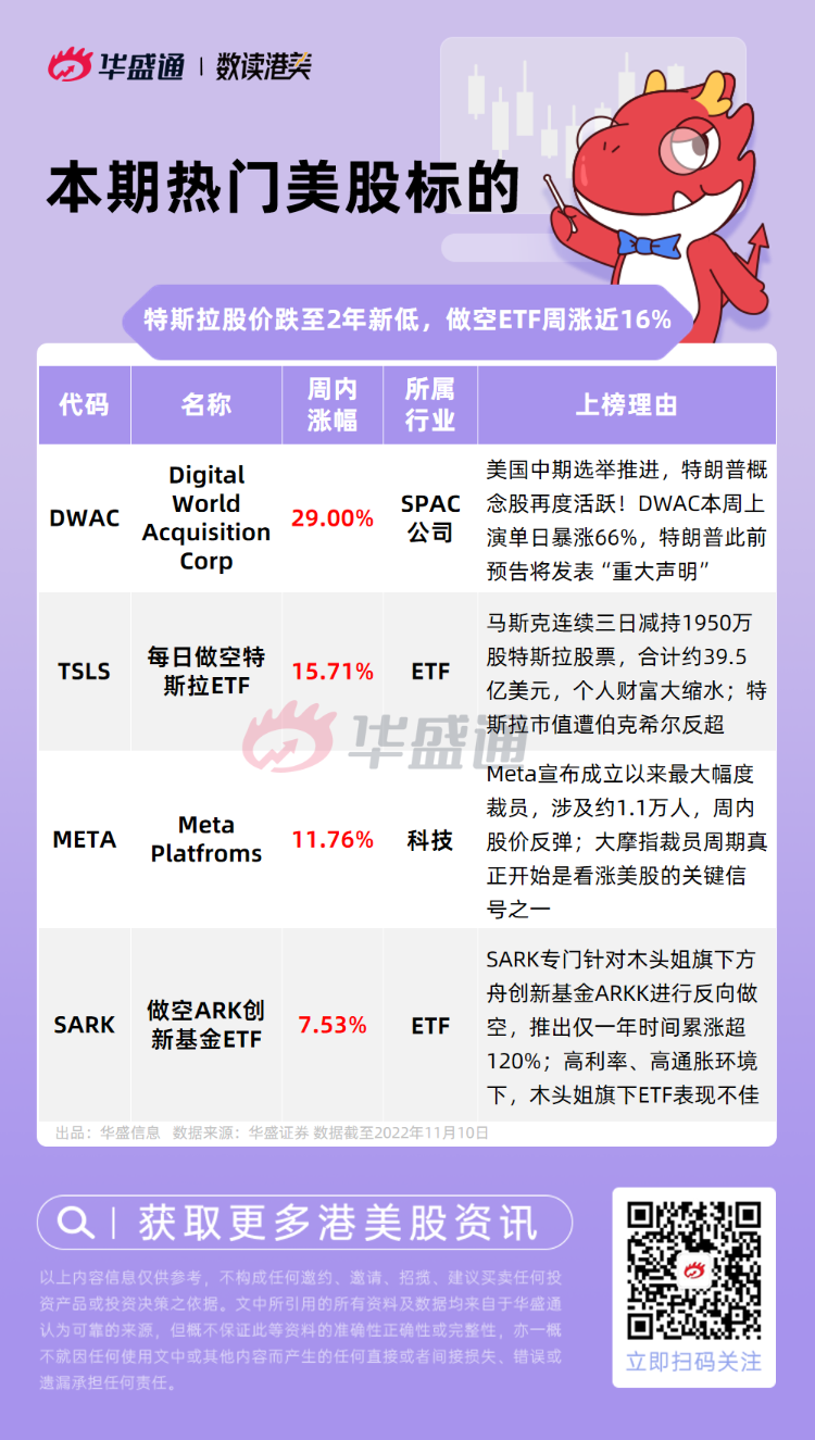 1、 美国中期选举推进,特朗普概念股 $DWAC 上演单日暴涨66%,特朗普此前预告将发表“重大声明”