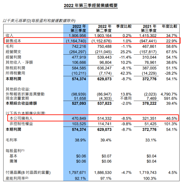 华盛资讯11月10日消息,中芯国际今日美股盘前披露2022年Q3财报。