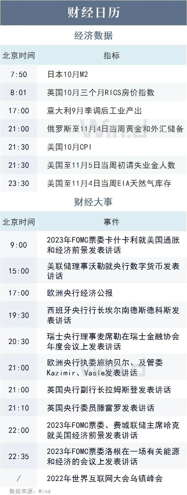 1、美10月CPI同比上涨7.7%,低于市场预期