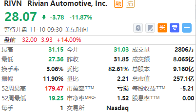Rivian $RIVN 盘前大涨14%,三季度产量同比增长67%