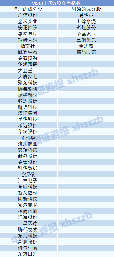 除新纳入股票之外,MSCI中国指数本次剔除了34只中国股票,其中包括19只A股标的。遭到剔除的股票有雅生活服务、阿里影业、顺鑫农业等。