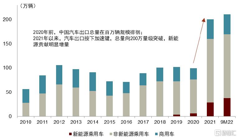 在政府支持引导政策下,中国自主品牌取得了全球新能源汽车的领先规模和技术优势。2022年1-9月中国新能源汽车累计销量达436万辆,占全球新能源汽车销量的62%,中国自主品牌在中国新能源汽车的市占率达80%,在全球新能源汽车的市占率超50%,有效实现全球出口。我们认为,未来中国汽车产业链,在加快适应技术变革并确保规模和技术优势的情况下,有望实现汽车大国向强国转变的弯道超车。