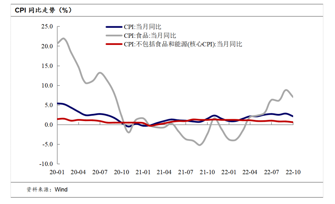 10月CPI同比回落,PPI同比转负。CPI方面,10月份,受节后消费需求回落、去年同期对比基数走高等因素影响,居民消费价格涨幅有所回落。CPI同比上涨2.1%,涨幅比上月回落0.7个百分点,同比涨幅回落较多,主要是受去年同期对比基数走高影响。从环比看,CPI上涨0.1%,涨幅比上月回落0.2个百分点。食品中,果蔬及水产品大量上市,加之节后消费需求有所回落,鲜菜、鲜果和水产品价格均由涨转降;受生猪生产周期、短期压栏惜售和猪肉消费旺季等因素影响,猪肉价格上涨9.4%,涨幅比上月扩大4.0个百分点。PPI方面,10月份,部分行业需求有所增加,全国PPI环比小幅上涨,但受去年同期对比基数较高影响,同比由上月上涨0.9%转为下降1.3%。从环比角度来看,石油相关行业价格继续下降;冬季储煤需求提升,煤炭开采和洗选业价格上涨3.0%,涨幅扩大2.5个百分点。受水泥价格上涨影响,非金属矿物制品业价格由下降0.4%转为上涨0.6%。