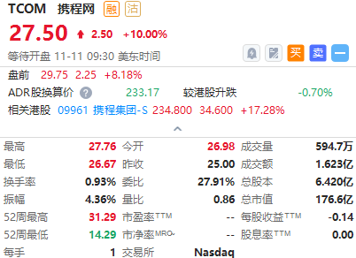携程 $TCOM 盘前涨超8%,入境航班熔断措施宣布取消