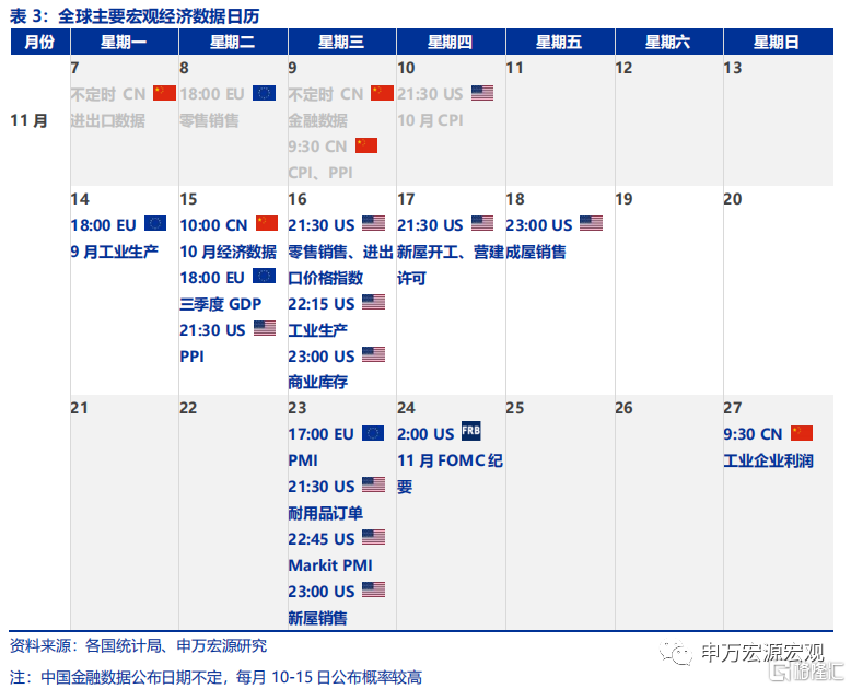 全球宏观日历:关注美国10月零售销售