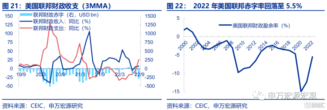 海外财政:2022财年美国联邦赤字高于CBO预测主要源于学生贷款减免。美国时间11月8日,CBO公布2022年财年的总结报告,实际联邦赤字率较其5月的基线预测扩大3390亿美元,主要源于减免部分联邦学生贷款所产生的 3790 亿美元支出。