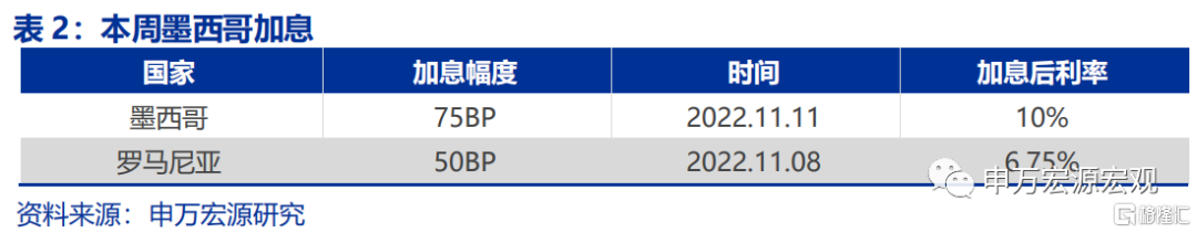 继上周美联储加息75BP后,本周墨西哥加息75BP,罗马尼亚加息50BP。
