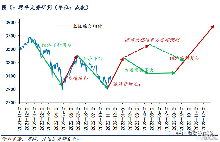 按照我们的经验,在熊市底部或牛市顶部,只有逆向思考的投资者才可能抓住风险收益比最好的买入卖出机会,而这些投资者大部分都是相信周期的。过去1年压制A股的负面因素有疫情、房地产、美联储加息、人民币汇率贬值等,这些因素近期均出现了积极的改善。这些改善至少意味着把所有的因素上升到长期宏大叙事可能是不合理的,政策和经济本身是存在周期的,当经济下降的时间足够久,政策的逆周期属性大概率会出现,这种变化有可能对经济和盈利的影响是年度级别的,股市整体存在着全面估值修复的可能。我们近期不断提示的V型反转正在兑现。如果反转期间政策的变化力度比较温和,则大概率第一波上涨持续到2023年初。如果伴随着政策落地的超预期,则可能会涨到2023年3月。这一次季度反转期间,上市公司盈利可能不会马上改善,股市可能是熊转牛的第一波上涨,仓位最重要,配置的重点是弹性,是估值和逻辑修复,而不是高频的景气改善。