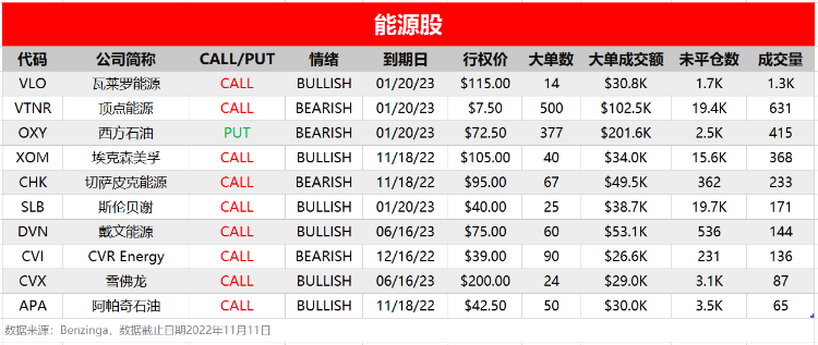- 西方石油现看跌期权异动,成交377张总成本20.16万美元。上周西方石油公布Q3业绩,营收超预期,利润略逊预期,但是整体强劲,周三该股遭遇杀跌,但周四周五随美股强劲反弹,期权成交活跃。