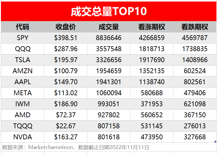 1.期权成交总量TOP10