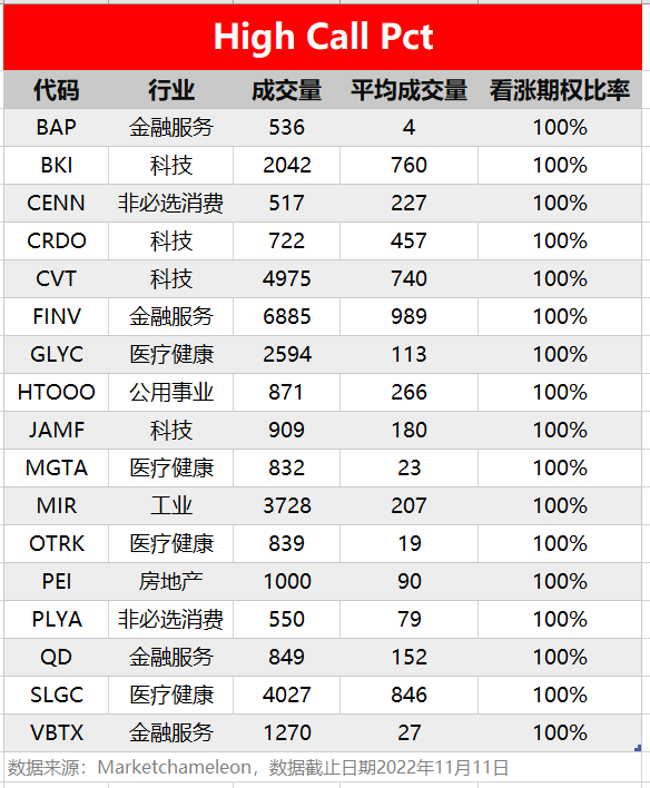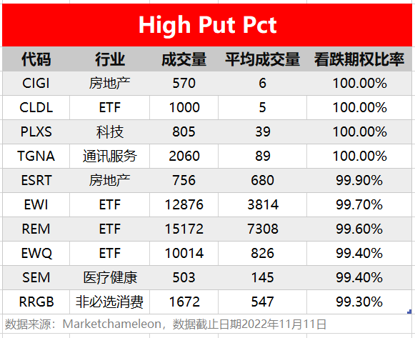 注:High Call Pct/High Put Pct是指相关期权标的当前看涨/看跌比例大小,该比值越高意味着该期权标的看涨/看跌的合约占比越高。