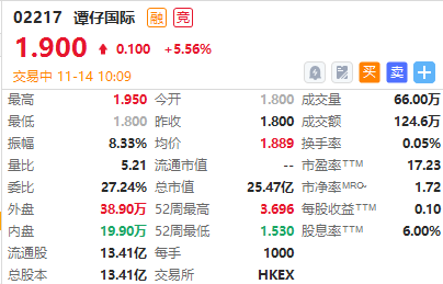 11月14日讯,香港本地消费股走强,谭仔国际(02217)涨5.56%,欧舒丹(00973)涨5.05%,普拉达(01913)涨4.3%,新秀丽(01910)涨3.22%,堡狮龙(00592)涨2.9%,莎莎国际(00178)涨1.96%。