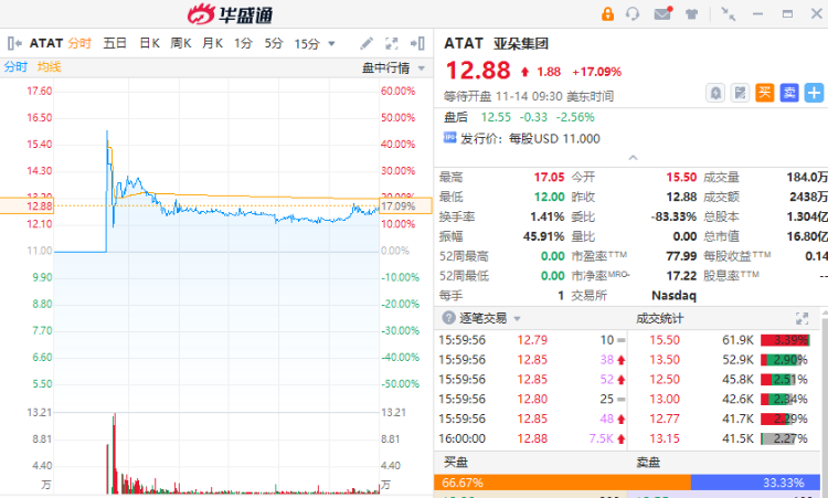 今晚,亚朵高开超40%。截至23:35,亚朵报于每股14.63美元,市值超19亿美元。