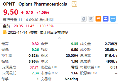 阿片类药物公司Opiant $OPNT 获收购,盘前暴涨120%