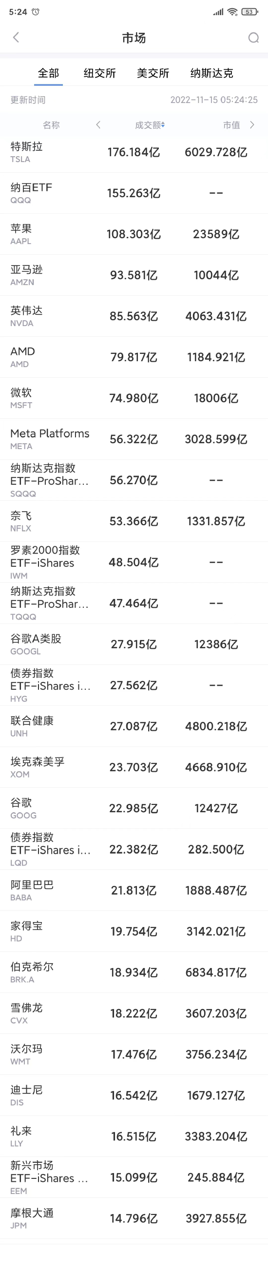 第8名奈飞收高3.15%,成交53.4亿美元。
