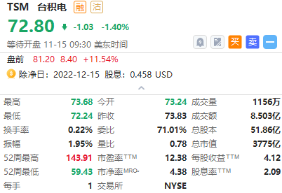 台积电(TSM)盘前涨超11%,巴菲特旗下伯克希尔哈撒韦三季度建仓台积电共6006万股,耗资约41亿美元。