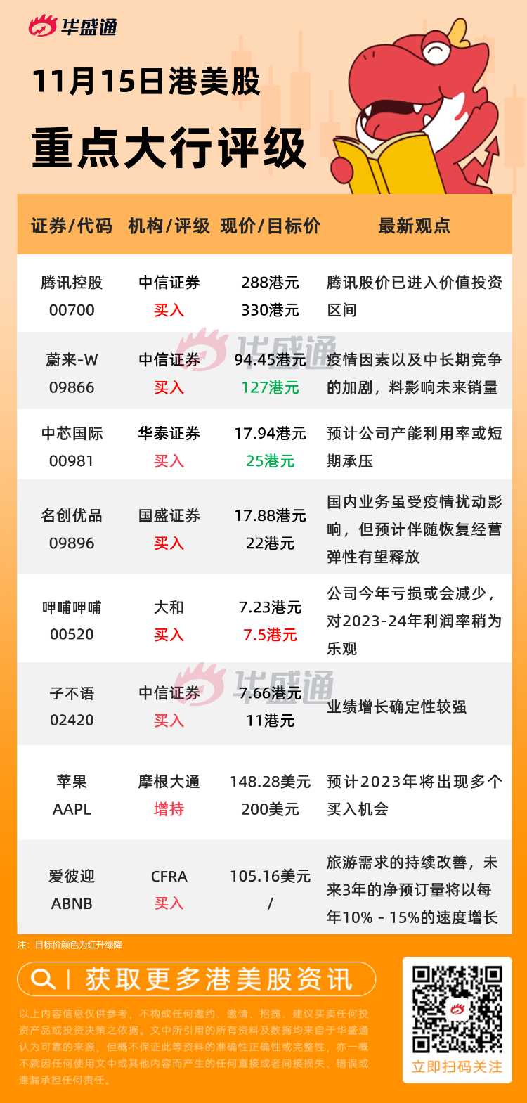 该行认为当前腾讯股价已进入价值投资区间,核心业务保持较强竞争优势,中长期仍有持续上行空间,维持“买入”评级,目标价330港元。
