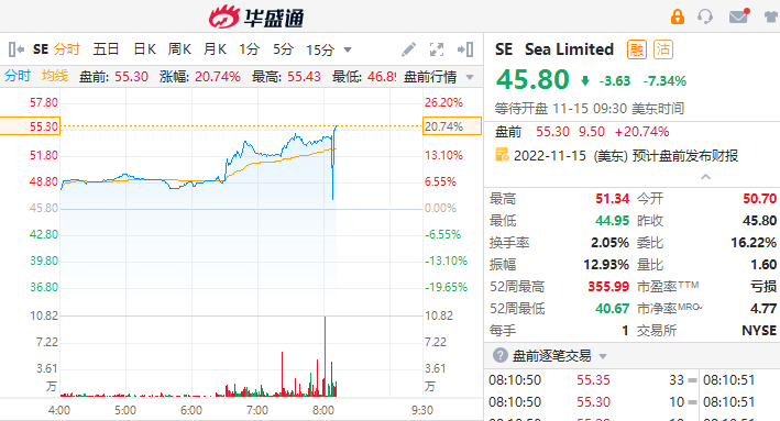 5、SEA盘前涨超20%,Q3净亏损同比收窄16.6%
