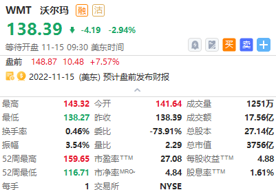 沃尔玛 $WMT 盘前劲升超7%,2023财年Q3营收超预期