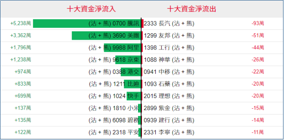 淡仓(认沽证及熊证)方面,周二腾讯、美团、阿里、京东相关淡仓单日分别获5238万港元、3362万港元、1796万港元、1238万港元资金净流入。