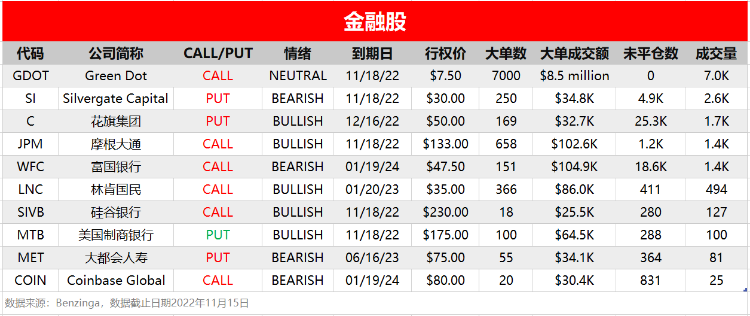 当日榜单TOP:Green Dot $GDOT 、Silvergate Capital、花旗集团、摩根大通、富国银行、林肯国民、硅谷银行、美国制商银行、大都会人寿、Coinbase Global。