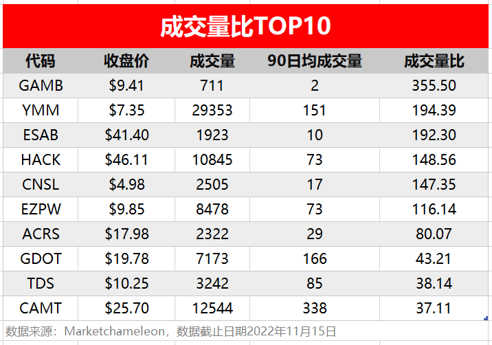 周二(11月15日),非必选消费、信息技术和金融板块相关个股出现较多活跃单,按照当日成交量排行,榜单TOP 10分别如下: