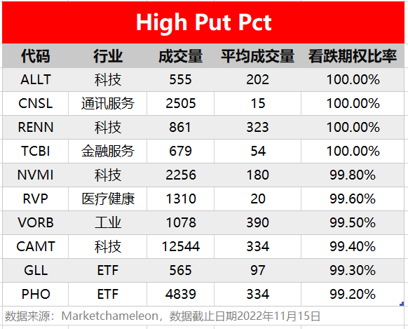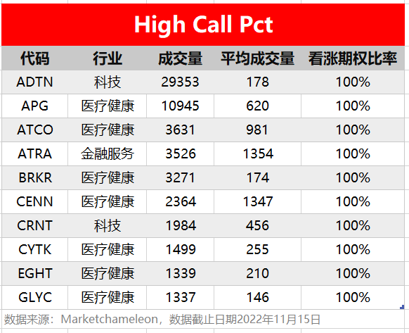 注:High Call Pct/High Put Pct是指相关期权标的当前看涨/看跌比例大小,该比值越高意味着该期权标的看涨/看跌的合约占比越高。