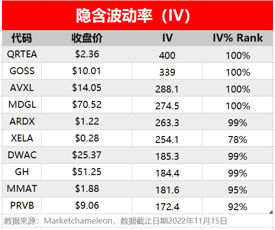 (注:隐含波动率(IV)指标是期权交易最常用的指标之一,通常情况下该指标越高,意味着期权交易的机会越大,IV(%)百分比表示当前隐含波动率在过去一年中最高和最低区间内的相对位置,有助于了解指定期权波动率的纵向趋势,该比率越高说明近期隐含波动率处于上升趋势。)