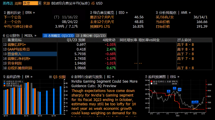 英伟达人为地将受影响的A100芯片的产量降低了33%,并将其重新命名为A800,以绕过美国的出口限制,继续向中国企业销售。因此,该分析师预计这种新的增长催化剂的出现将缓解全球宏观经济疲软带来的销售下滑。他预计英伟达的数据中心收入将环比下降5%,第三季度达到36.1亿美元。