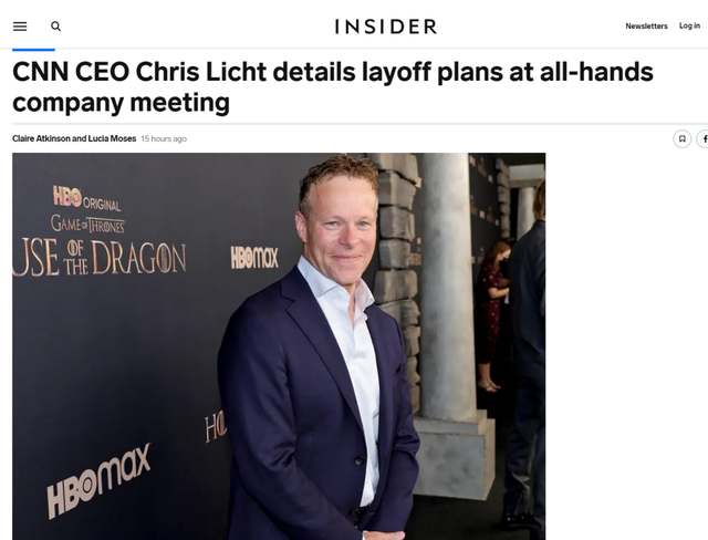 15日,美国有线电视新闻网(CNN)CEO克里斯·利希特宣布,CNN将于12月开始进行裁员。