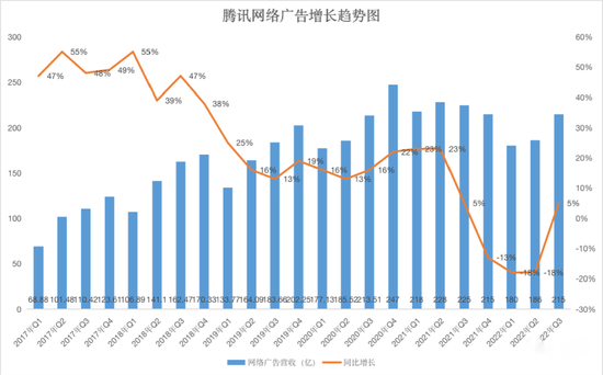 受大环境等综合因素影响,第三季度,腾讯全线承压。从《王者荣耀》到腾讯视频,再到企业服务,腾讯曾经的赚钱机器几乎全线失灵,对应的增值服务业务、广告业务、企业服务业务全面下滑。