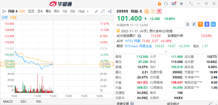 今日的港股市场颇为不平静,游戏股高开低走,其中网易更是一度跳水跌超14%,截至午盘,跌幅收窄为10.9%,最新市值为3503亿港元。