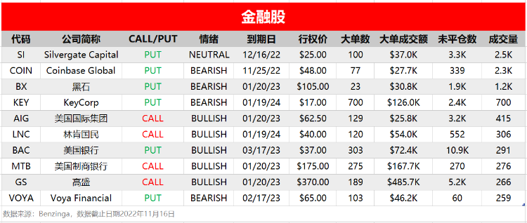 当日榜单TOP:Silvergate Capital、Coinbase Global、黑石、KeyCorp、美国国际集团、林肯国民、美国银行、美国制商银行、高盛、Voya Financial。