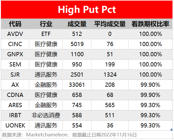注:High Call Pct/High Put Pct是指相关期权标的当前看涨/看跌比例大小,该比值越高意味着该期权标的看涨/看跌的合约占比越高。