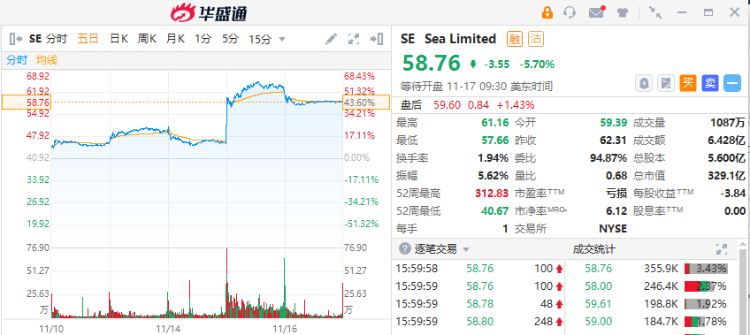 1、Q3营收超预期,“东南亚小腾讯”Sea $SE 绩后单日飙涨36%!获小摩等唱多,看涨空间高至45%。