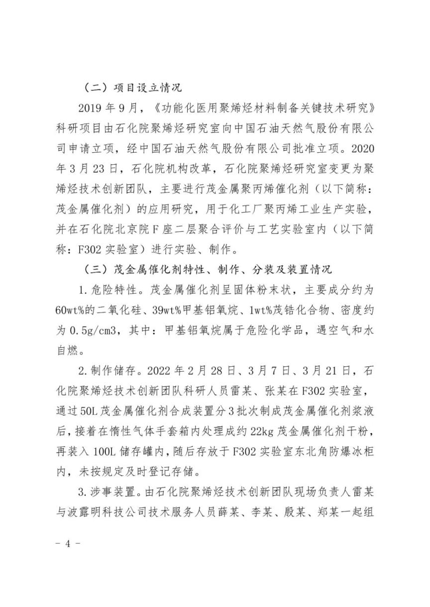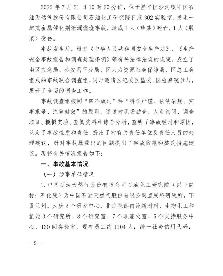 (原标题:造成一死一伤,中石油石油化工研究院催化剂泄漏燃烧事故调查报告公布)