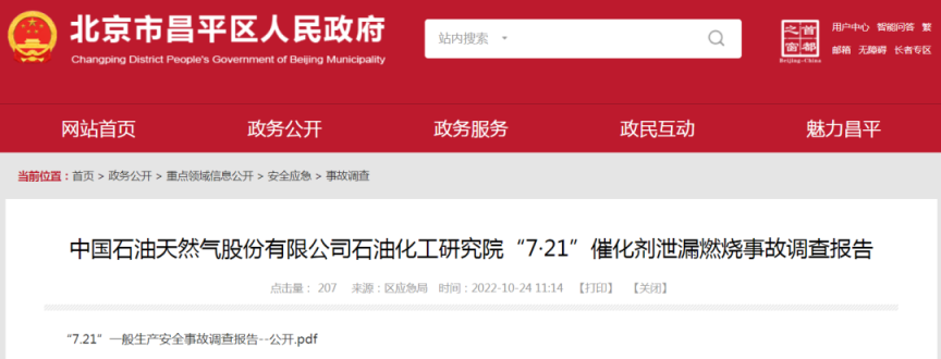 近日,北京市昌平区政府网站公布了该起事故的调查报告。