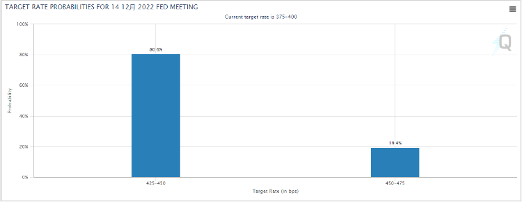 根据CME利率观测工具显示m12月加息50个基点的概率高达80.6%。