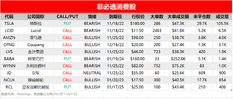 - Lucid出现看涨期权大单异动,成交量达到2463张,行权日期11月18日,行权价11.5美元,截至周四收盘,Lucid股价为11.46美元。