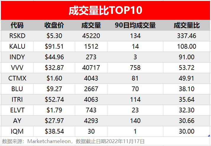 周四(11月17日),非必选消费、信息技术和医疗健康板块相关个股出现较多活跃单,按照当日成交量排行,榜单TOP 10分别如下: